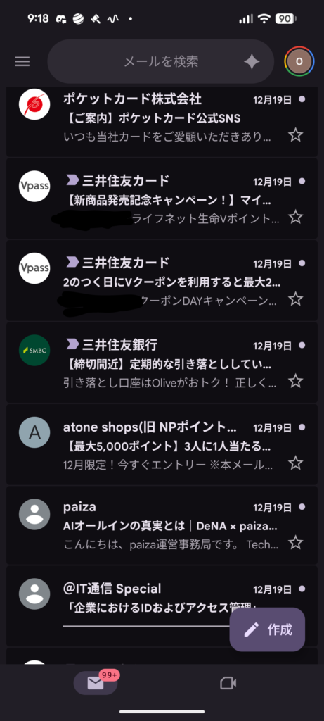 中身はほとんどが、楽天やAmazonからのセール通知や、クレジットカードのキャンペーンのお知らせ、昔なんとなく登録したサービスのメルマガ、投資関連のニュースレターです。
